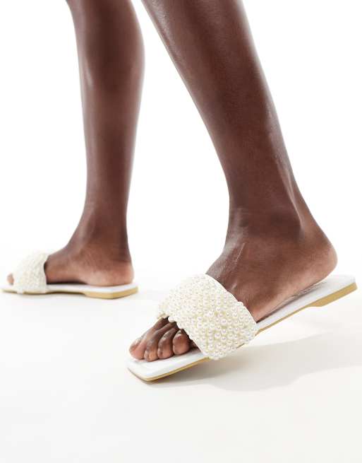 Truffle Collection – För bruden – Vita mules med öppen häl, utsmyckade remmar