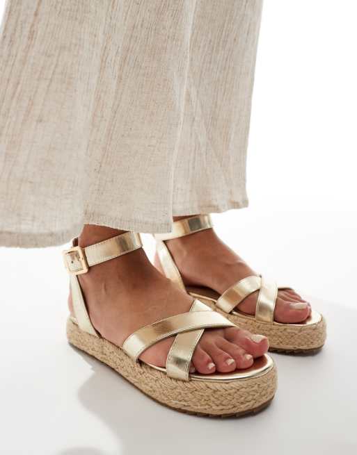 Truffle Collection – Guldfärgade flatform-espadrillos