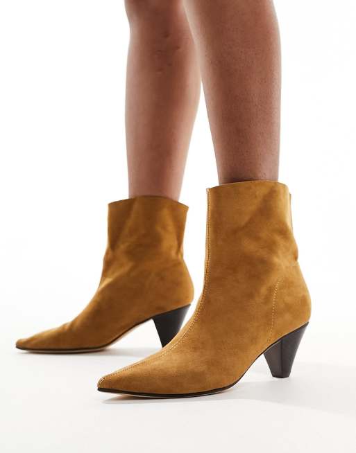 Truffle Collection – Ljusbruna ankelboots med konformad klack