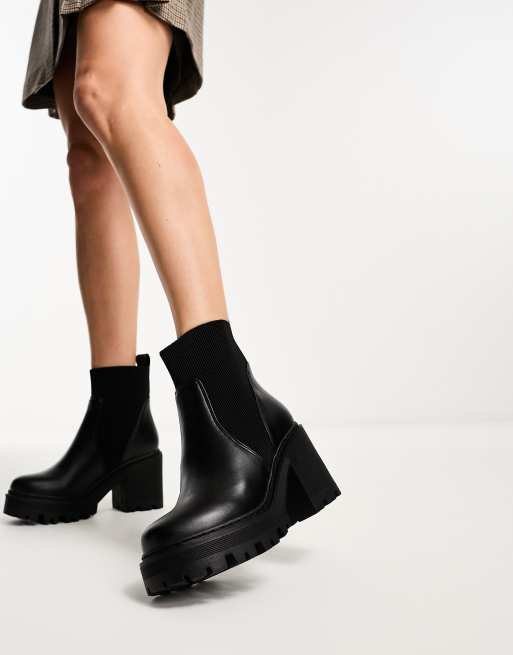 Truffle Collection – Svarta grova chelseaboots med klack