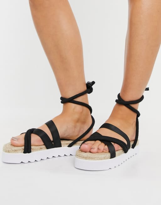 Truffle Collection – Svarta grova espadriller med knytning runt benet