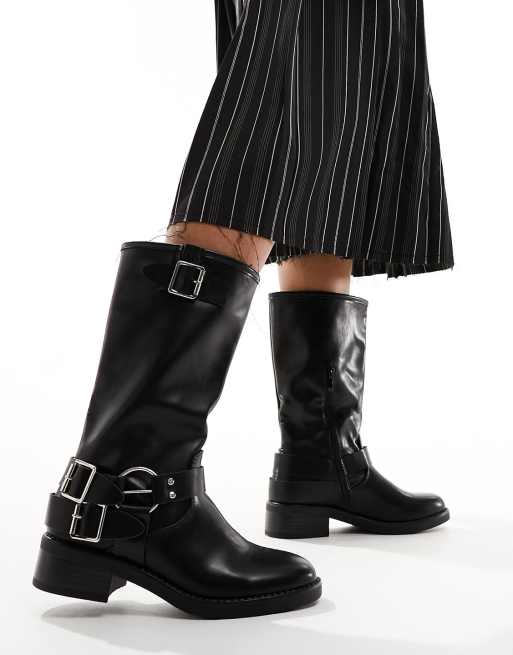 Truffle Collection – Svarta knähöga bikerboots