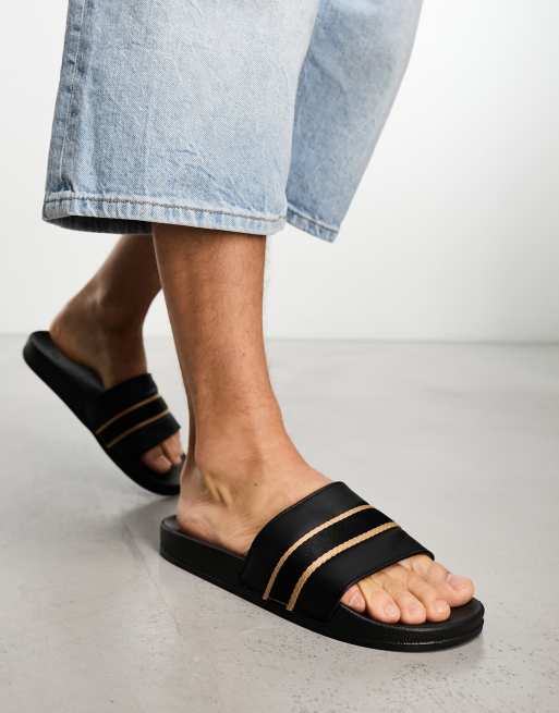 Truffle Collection – Svarta tofflor med guldfärgat tryck