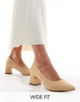 Truffle Collection Wide Fit – Beige pumps med blockklackar