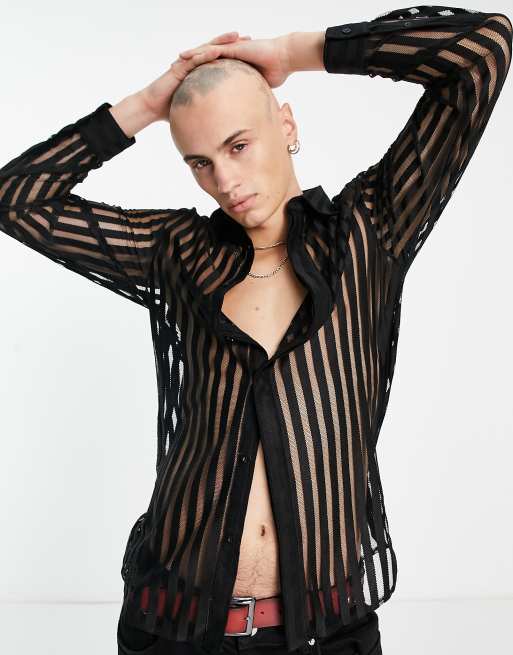 Twisted Tailor – Boise – Svart smal skjorta i randig spets