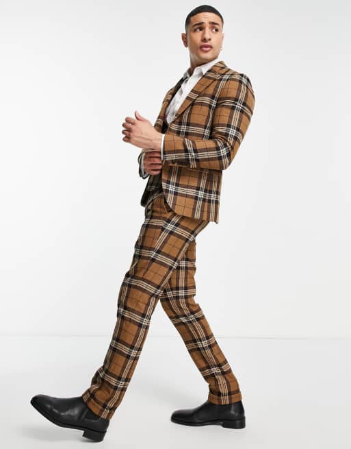 Twisted Tailor – Brun, skotskrutig kostymjacka