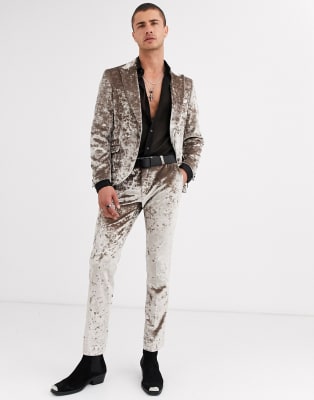 Twisted Tailor – Champagnefärgad kostym i krossad sammet med supersmal passform