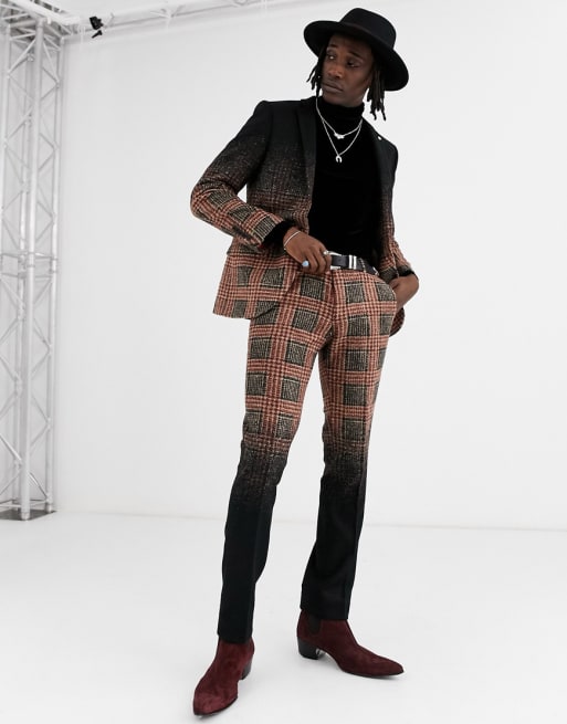 Twisted Tailor – Grårutig kostym med blekt mönster och supersmal passform