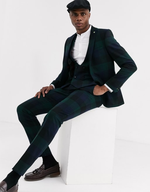 Twisted Tailor – Grönrutig kostym med supersmal passform