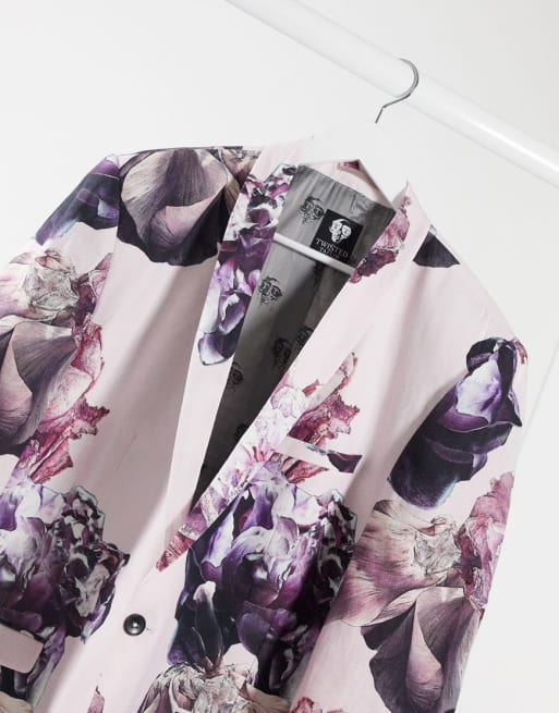 Twisted Tailor – Plus – Rosa blommigt kostymset i linne med smal passform