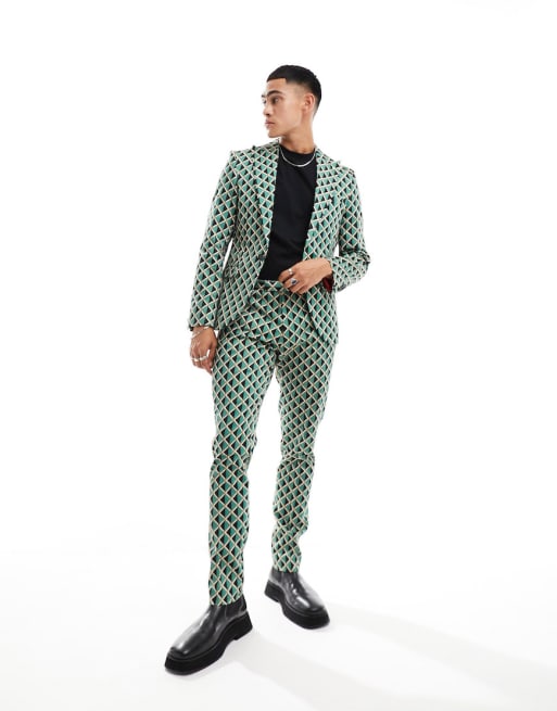Twisted Tailor – Shadoff – Grön kostym med geometriskt mönster i vintagestil