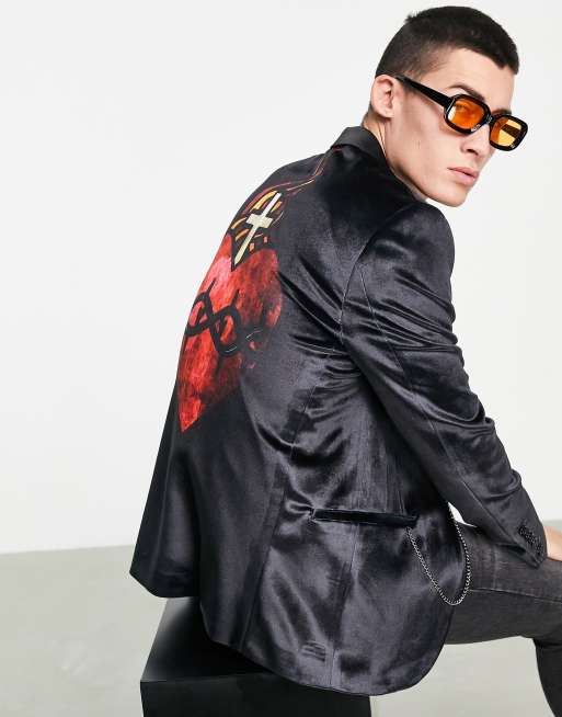 Twisted Tailor – Svart kavaj i sammet med hjärttryck baktill