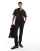 Twisted Tailor – Svart skjorta med platt krage och korta ärmar i spets