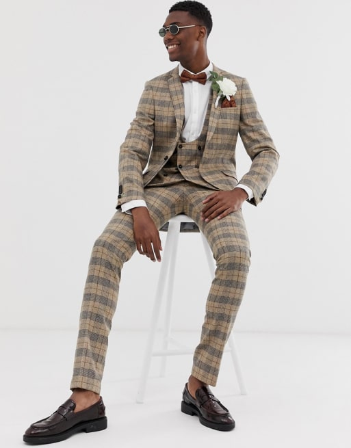 Twisted Tailor Tall – Brunrutig kostym med supersmal passform och kedja