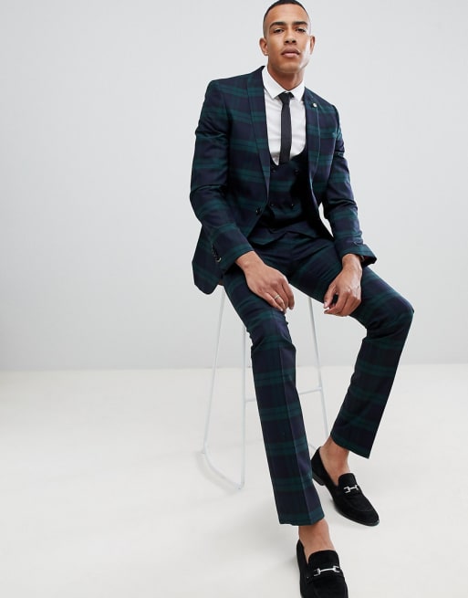 Twisted Tailor TALL - Super skinny kostym i grönrutigt