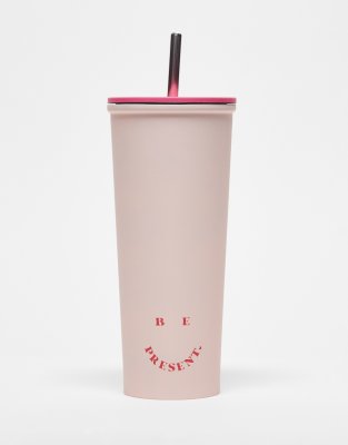 Typo – Rosa smoothie-mugg med "Be Present"-text