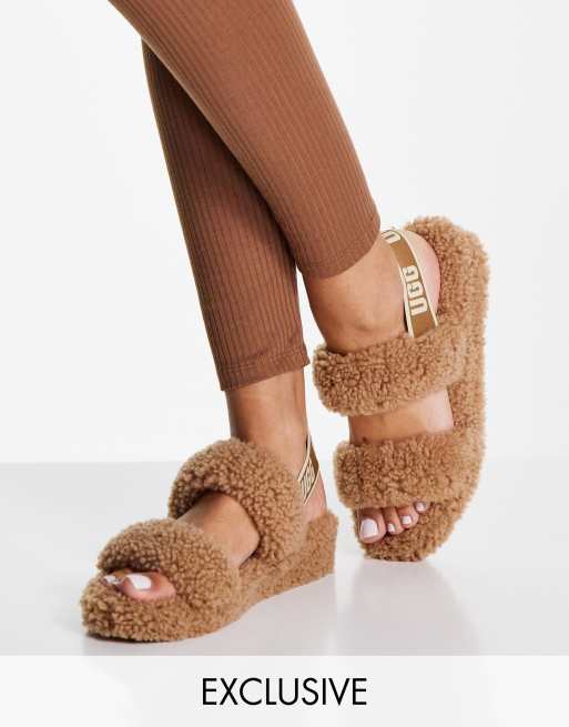 UGG – Exclusive – Oh Yeah – Kastanjebruna, platta sandaler med dubbla remmar