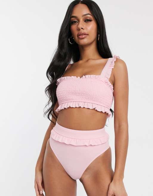 Unique – 21 – Bikiniöverdel med smock och smala axelband med volang