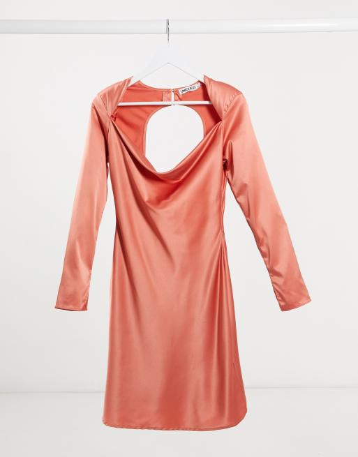 Unique21 – Terrakottafärgad diagonalskuren miniklänning i satin med utskuren rygg