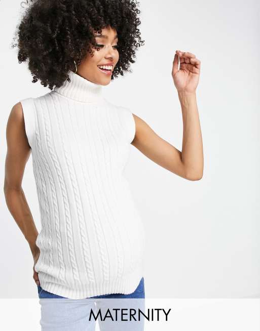 Urban Bliss – Maternity – Krämfärgad kabelstickad ärmlös tröja med hög krage