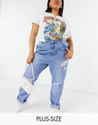 Urban Bliss Plus – Mellanblå slitna boyfriend-jeans
