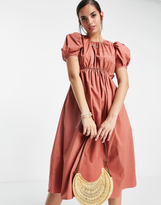 Urban Revivo – Brun smockklänning i midilängd med indragen midja
