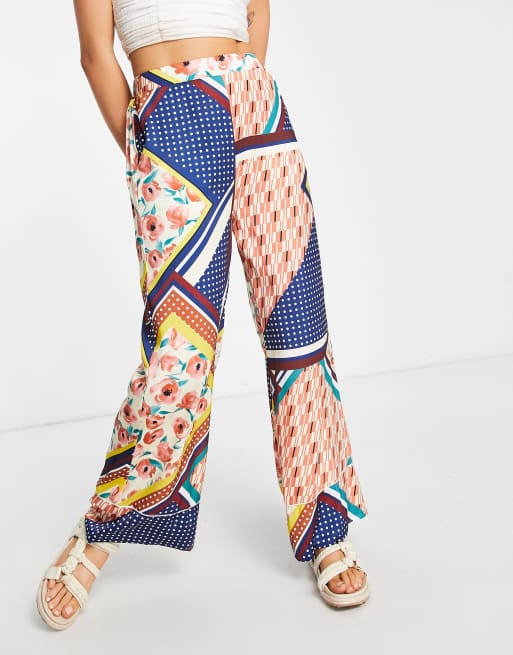 Urban Revivo – Flerfärgade mönstrade byxor med vida ben, del av set