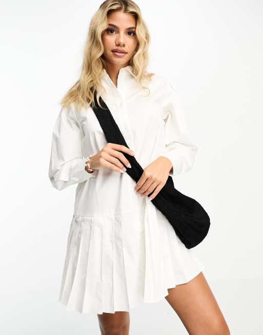 Urban Revivo – Vit kort skjortklänning med plisserad kjol