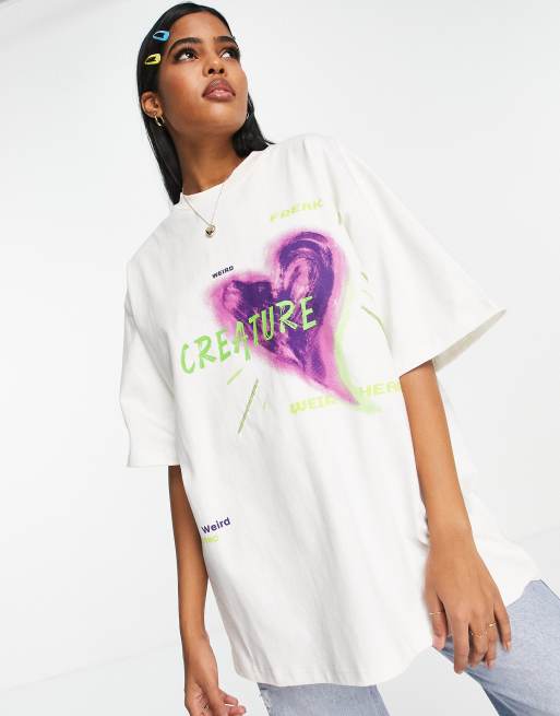 Urban Revivo – Vit t-shirt i oversize med tryck