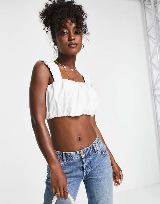 Urban Revivo – Vitt linne med rynkning och smala axelband