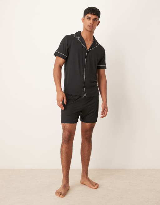 Urban Threads – Svart pyjamas i polyester med kortärmad skjorta och shorts