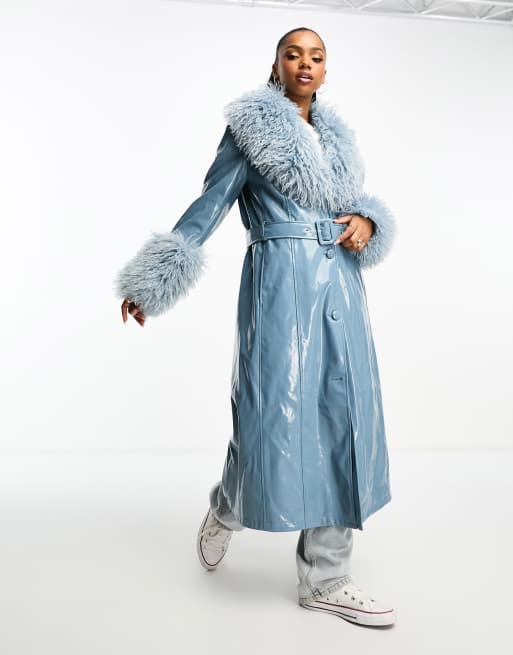 Urbancode – Blå trenchcoat i vinyl med teddykant