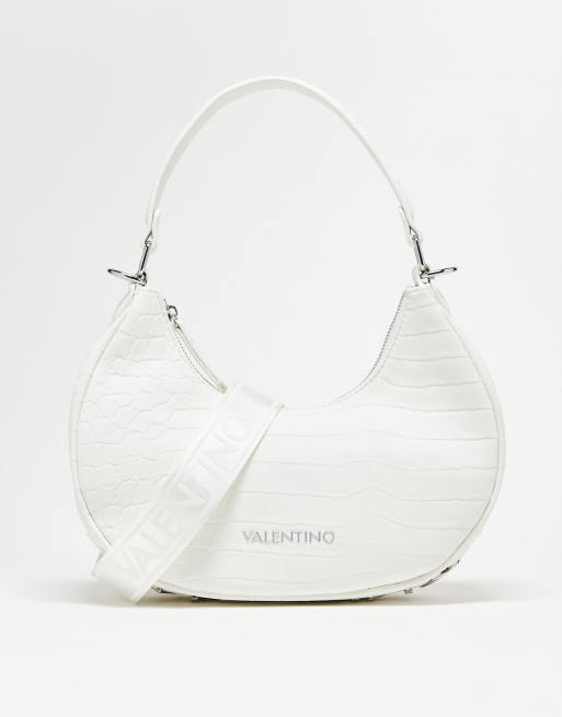 Valentino – Coconut – Vit, krokodilskinnsmönstrad axelväska med metallbokstäver