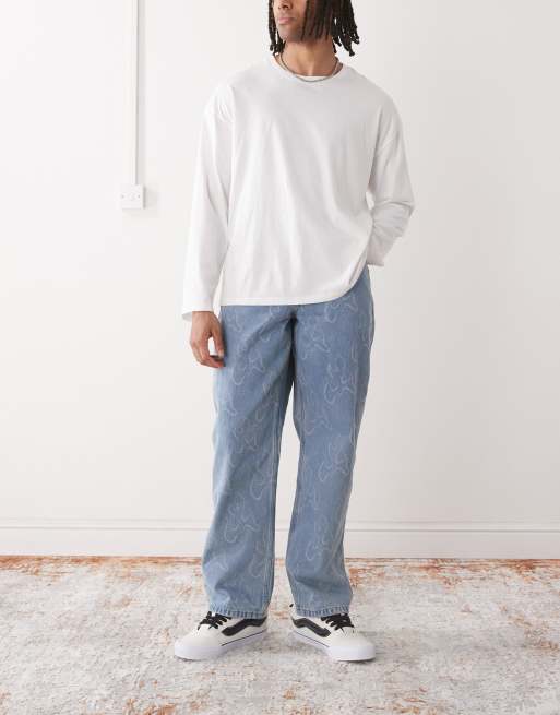 Vans – Check-5 Blaze – Blå, tvättade, helmönstrade jeans med ledig passform