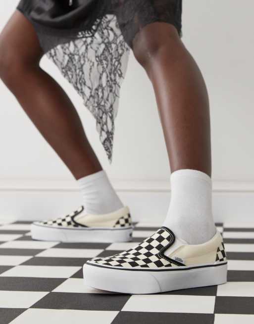 Vans Classic – Slip-On Platform – Svarta och vita sneakers i loaferstil med platå och schackrutigt mönster
