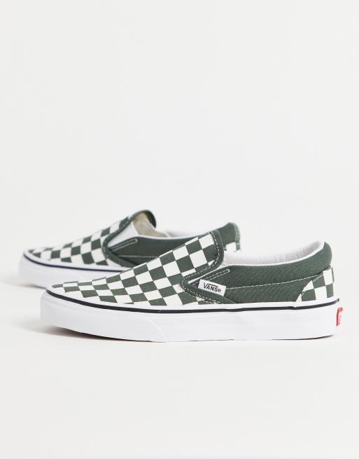 Vans – Mörkgröna, schackrutiga sneakers i slip on-modell