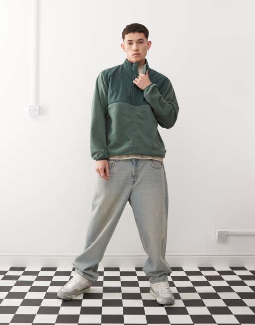 Vans – Ranford - Mörkgrön fleecetröja med kort dragkedja och hög krage