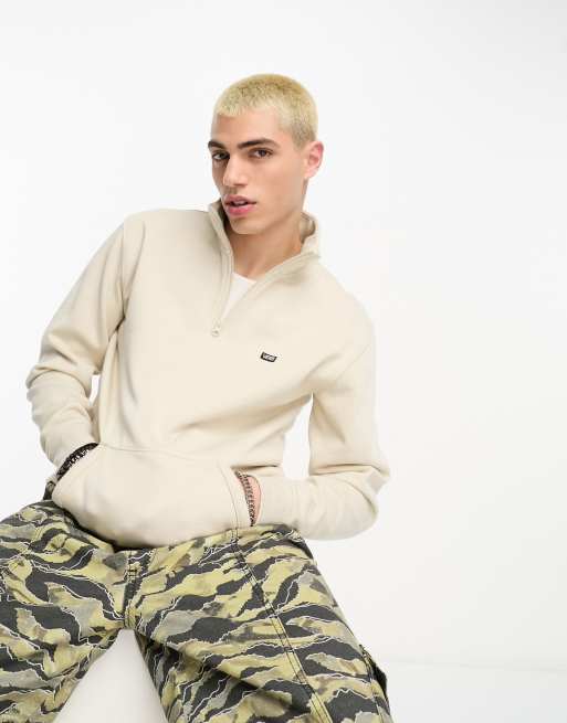 Vans – Versa Standard – Beige fleece med bröstlogga på vänster sida och kvartslång dragkedja