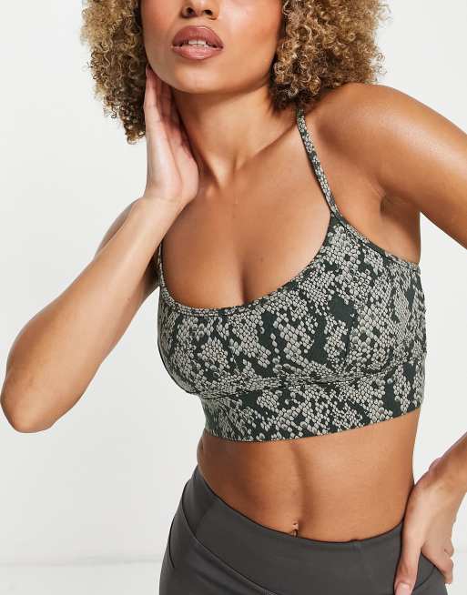 Varley – Irena – Ormskinnsmönstrad sportbehå med lätt stöd