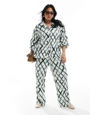 Vero Moda Curve – Batikrutigt plisserat set med skjorta och vida byxor