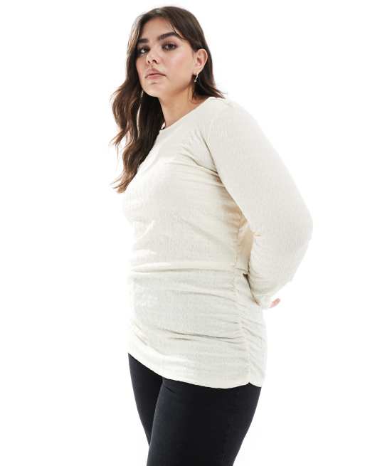 Vero Moda Curve – Gräddvit, texturerad topp med rysch och långa ärmar