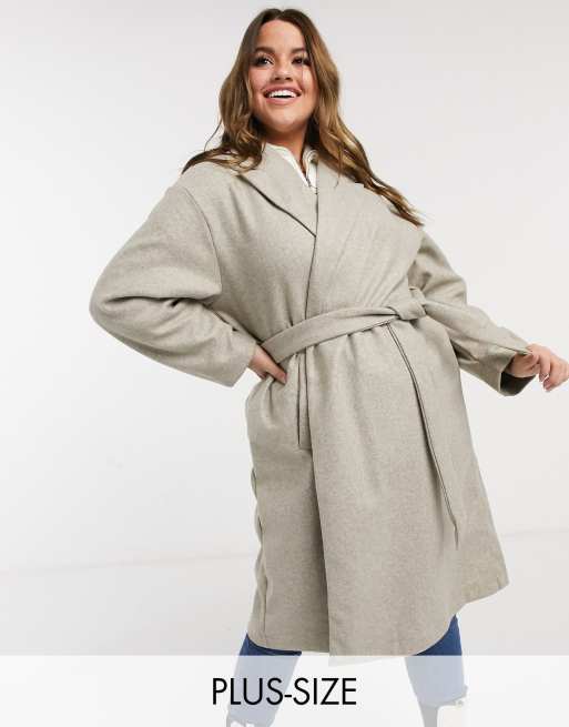Vero Moda - Curve - Havrefärgad figursydd kappa med midjeskärp