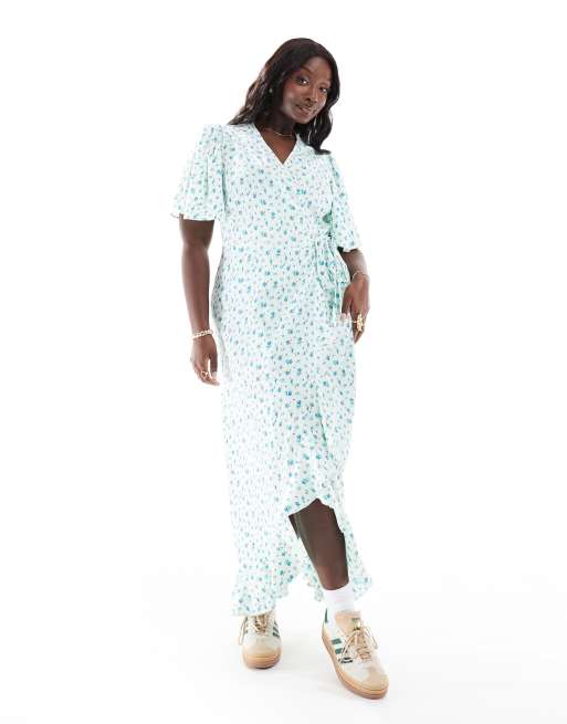 Vero Moda Curve – Ljusblå, blommig maxiklänning med omlottdesign framtill
