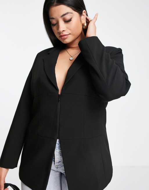 Vero Moda Curve – Svart kavaj med figursydd midja och dragkedja framtill