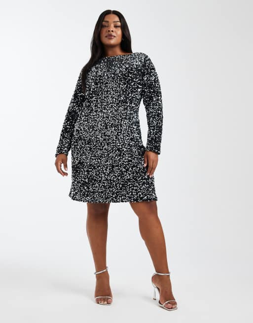Vero Moda Curve – Svart, texturerad klänning med silverfärgade paljetter