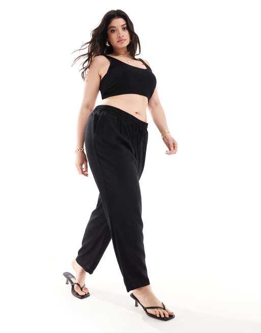 Vero Moda Curve – Svarta avsmalnande byxor i linnemix
