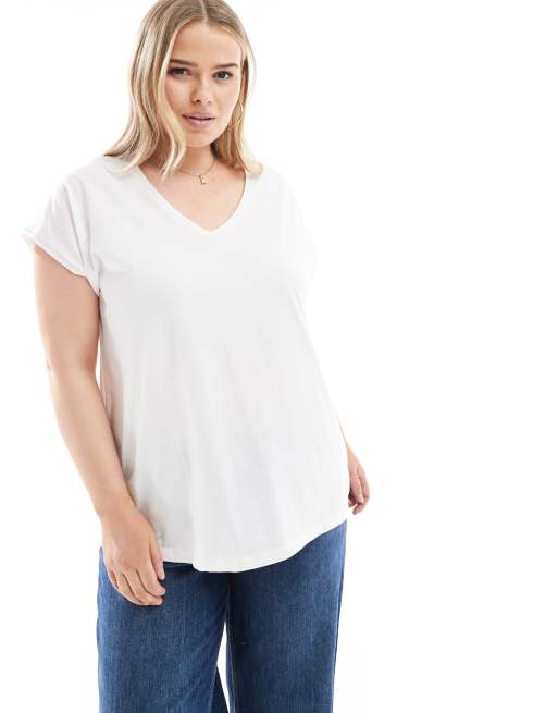 Vero Moda Curve – Vit, avslappnad t-shirt i oversize med v-ringning