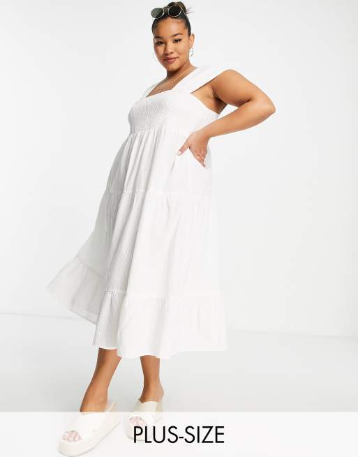 Vero Moda Curve – Vit midilång smockklänning
