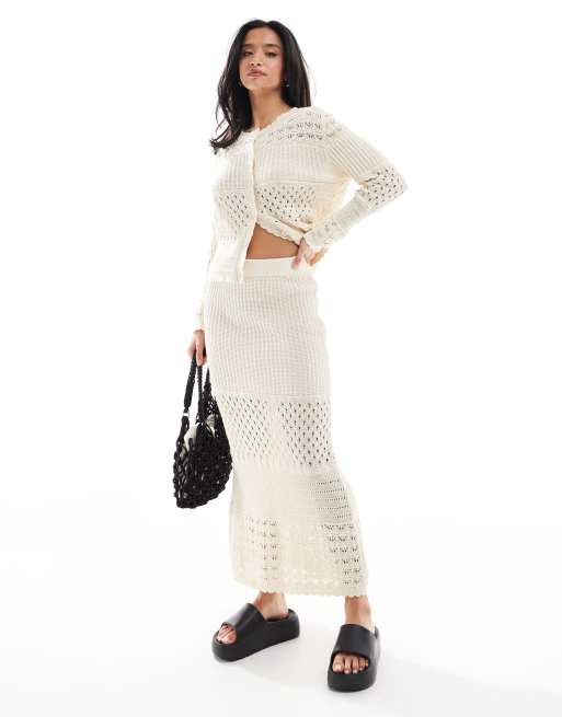Vero Moda Petite – Gräddvitt, virkat set med kofta och kjol