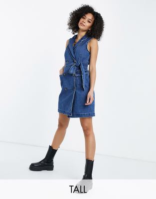 Vero Moda Tall – Blå ärmlös miniklänning i denim